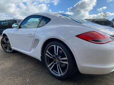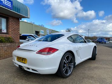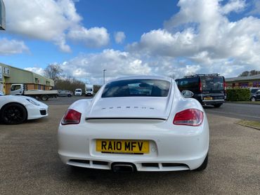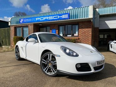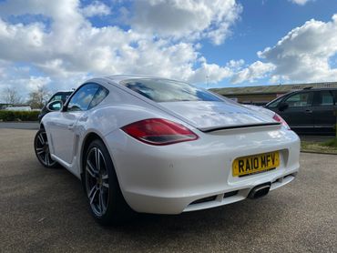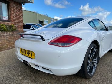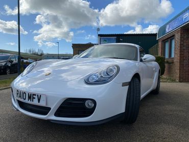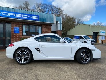 Porsche Cayman 987 generation 2 supplied new in July 2010 by the Official Porsche Centre Mid Sussex. With Carrera White paint and black leather interior. This 987 generation 2 has a very good specification with the highly desirable 2.9 engine, 6 speed manual gearbox, 19 inch Turbo wheels, PCM3 with navigation & phone connectivity, BOSE sound system, heated leather seats, sports seats, sports steering wheel with multifunction rear parking sensors & much much more. Just take a look at the full specification listed above. .