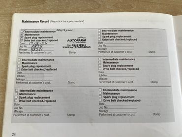 12 months MOT and Major service, drive belt, spark plugs & Brake fluid change