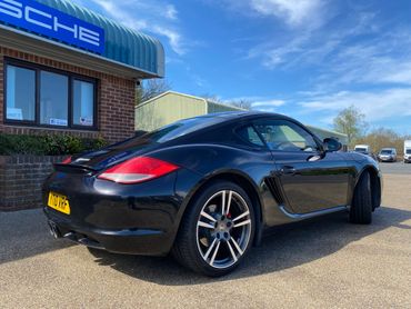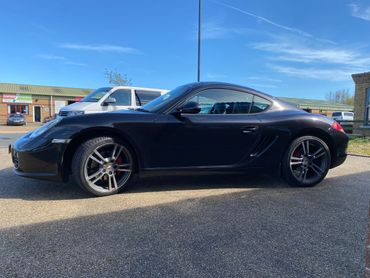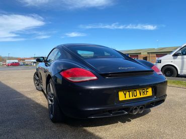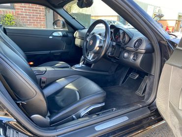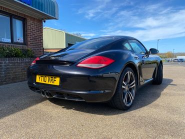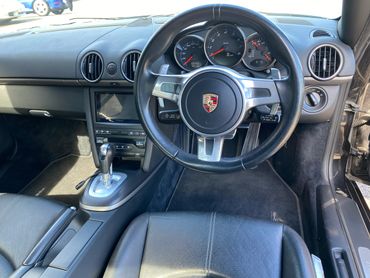 Porsche Cayman 987 generation 2 supplied new in April 2010 by the official Porsche Centre Sheffield . With Basalt black metallic paint and black leather interior. This 987 generation 2 has a huge specification with the highly desirable 2.9 engine, 7 speed PDK gearbox, 19 inch Turbo 11 wheels, Sport Design steering wheel with PDK paddle shift, Pioneer touchscreen CarPlay system with navigation & phone connectivity, red brake calipers, cruise control, & much much more. Just take a look at the full specification listed above. .